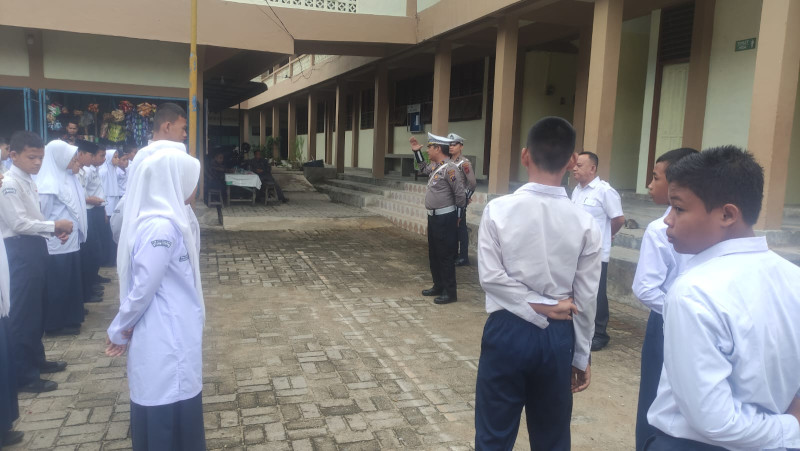 Kasat Lantas Polres Sibolga AKP Muhammad Joni diwakili oleh Kanitregident Sat Lantas Polres Sibolga IPDA Marwa Siregar bersama Personil Sat Lantas Polres Sibolga, melaksanakan Kunjungan ke Sekolah MTs Muhammadiyah Sibolga memberikan Sosialisasi Tertib Berlalu Lintas dijalan raya.