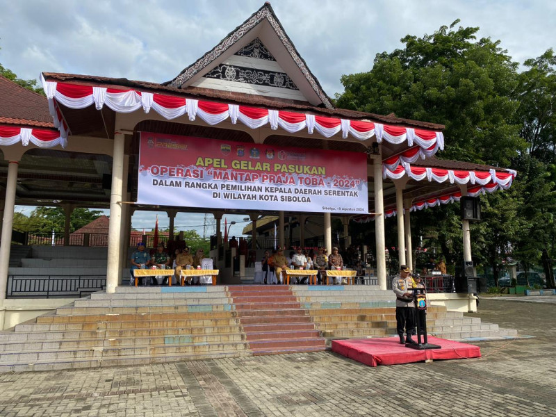 SIBOLGA , indonesiaclik.com ll , menggelar kegiatan Apel Gelar Pasukan Operasi Mantap Praja Toba – 2024, dalam rangka Pengamanan Pemilihan Kepala Daerah Serentak di Wilayah Kota Sibolga, pada Senin, 19 Agustus 2024, bertempat di Lapangan Simaremare Jalan Sutomo Kelurahan Simaremare Kecamatan Sibolga Utara, Kota Sibolga. Apel Gelar Pasukan Ops Mantap Praja Toba – 2024 ini dipimpin oleh Waka Polres Sibolga KOMPOL Diarma Munthe, SH, mewakili Kapolres Sibolga AKBP Achmad Fauzy, SH, SIK, MIK. Ops Mantap Praja Toba Tahun 2024 Polres Sibolga dilaksanakan selama 147 hari terhitung mulai tanggal 20 Agustus 2024 sampai dengan tanggal 25 Januari 2025.