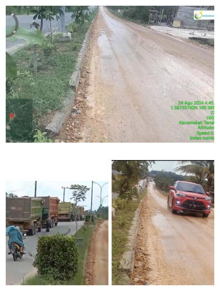 Sp.SOLAH_ ROHIL, indonesiaclik.com || Jalan simpang Solah menuju Permukiman padat penduduk, “Sedinginan” terlihat ada gangguan pengguna lalin, tanah berserakan yang jatuh dari roda mobil tronton menjadi lumpur di sepanjang jalan. 25/8/2024