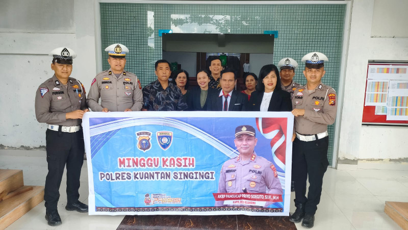 Kapolres Kuansing, AKBP Pangucap Priyo Soegito, S.I.K, M.H., melalui Kasat Lantas AKP Boy Setiawan S.AP., M.SI, mengatakan, “Kegiatan Minggu Kasih ini bertujuan untuk meningkatkan kedekatan dan kepercayaan masyarakat terhadap Polri. Selain itu, kegiatan ini diharapkan dapat memperkuat kehadiran Polri di tengah-tengah masyarakat, menciptakan rasa aman dan nyaman bagi jemaat yang sedang melaksanakan ibadah, serta mendengarkan langsung permasalahan yang dihadapi oleh masyarakat di wilayah tersebut,” jelas Kasat Lantas.