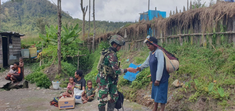 Gigobak, indonesiaclik.com || Prajurit Satgas Mobile Yonif 322 Buaya Putih melalui TK Sinak, membagikan sembako kepada warga di pedalaman Papua di Kampung Gigobak Distrik Sinak, sebagai wujud kepedulian membantu kesulitan masyarakat Kampung Gigobak, Distrik Sinak, Kabupaten Puncak, Papua Tengah, Jumat (30/08/2024)
