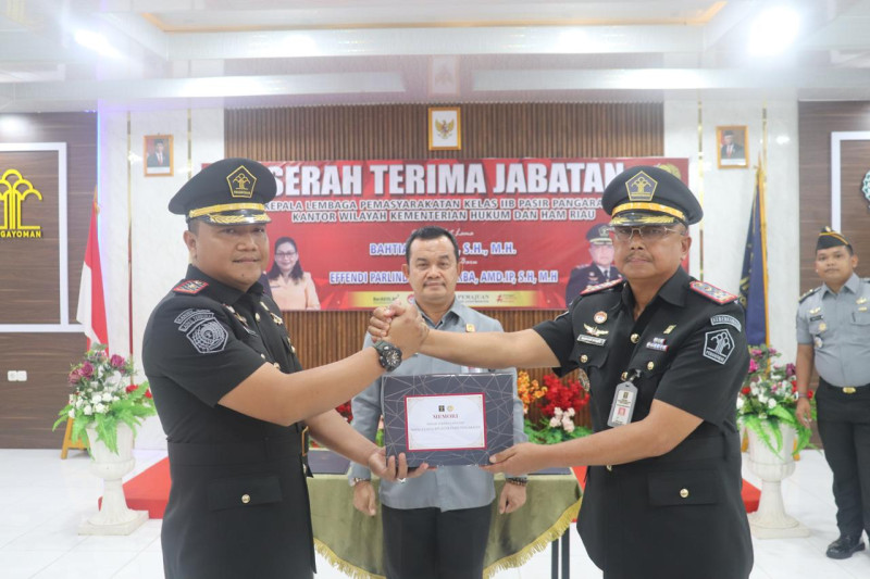 BAHTIAR SITEPU SERAHKAN KEPEMIMPINAN LAPAS PASIR PENGARAIAN KEPADA EFENDI PARLINDUNGAN PURBA