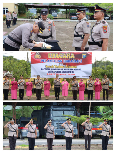 Tapteng ,indonesiaclik.com ll Kapolres Tapanuli Tengah AKBP Basa Emden Banjarnahor, SIK, MH pimpin Upacara Serah Terima Jabatan Kapolsek Manduamas, Kapolsek Kolang dan Kapolsek Sibabangun dan Pelantikan Kabaglog Polres Tapanuli Tengah. Selasa (24/9/2024) pukul 08.00 Wib