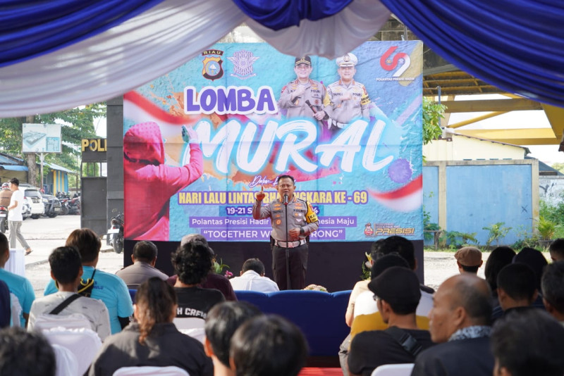 “Alhamdulillah, dalam kesempatan pagi ini secara resmi kita buka kegiatan Karya Lomba Mural, semoga kegiatan ini bisa membawa dampak yang positif kepada masyarakat melalui karya seni yang di kemas dalam bentuk himbauan tertib dalam berlalu lintas, kegiatan Lomba Mural di ikuti 144 seniman Se provinsi Riau.” ucap Dirlantas Polda Riau dengan secara resmi membuka kegiatan tersebut, Jum’at (20/09/24)
