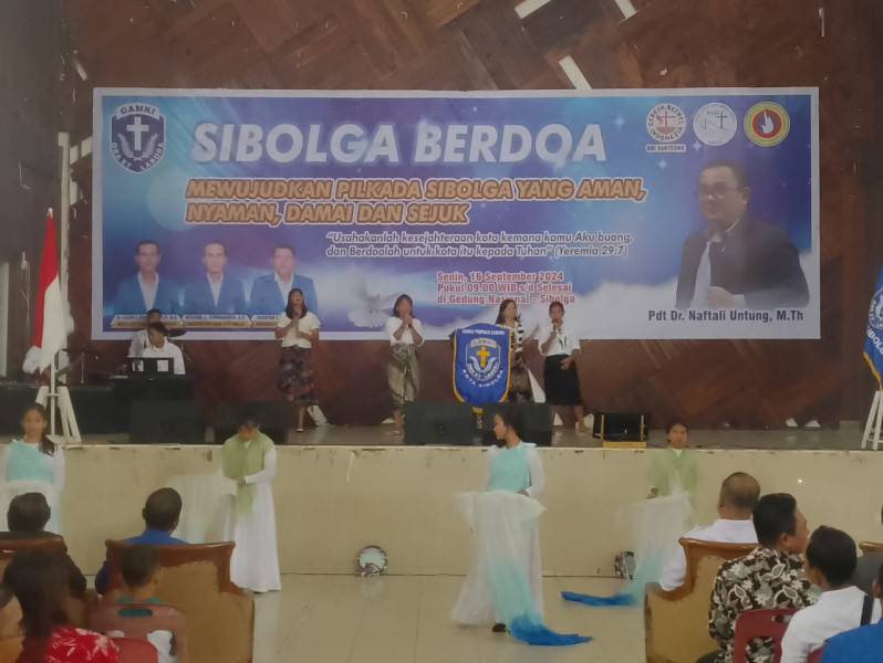 SIBOLGA , indonesiaclik.com ll Senin 16 September 2024 – Pada pukul 09.00 WIB, Gedung Nasional Kota Sibolga di Jln. Dr. FL. Tobing, Kelurahan Kota Baringin, Kecamatan Sibolga Kota, Kota Sibolga, menjadi lokasi pelaksanaan kegiatan Ibadah bersama dalam rangka “Sibolga Berdoa” untuk menciptakan Pilkada Serentak Tahun 2024, di Kota Sibolga, yang damai, sejuk, dan kondusif. Kegiatan ini diselenggarakan oleh Badan Kerjasama Antar Gereja (BKAG) Kota Sibolga bekerja sama dengan Gerakan Angkatan Muda Kristen Indonesia (GAMKI) Kota Sibolga.