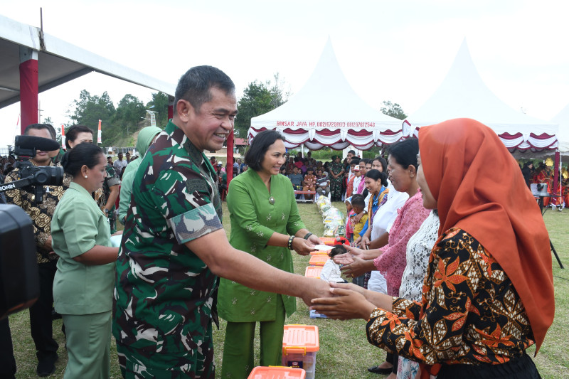Di lokasi yang sama, Kasad bersama Ketua Umum Persit KCK juga menyerahkan tali asih kepada warakawuri, bantuan makanan bergizi untuk mencegah stunting, dan bantuan alat olah raga kepada sekolah.