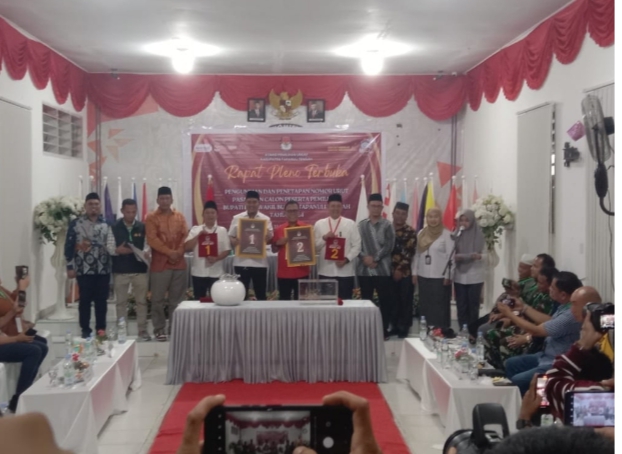 TAPTENG , indonesiaclik.com ll Komisi Pemilihan Umum (KPU) Tapanuli Tengah (Tapteng) menggelar pengundian dan penetapan nomor urut pasangan calon (paslon) Bupati dan Wakil Bupati Tapteng 2024 dalam rapat pleno terbuka di Aula Kantor KPU, Jalan Morison No. 7, Pandan, Senin (23/09/2024) malam.