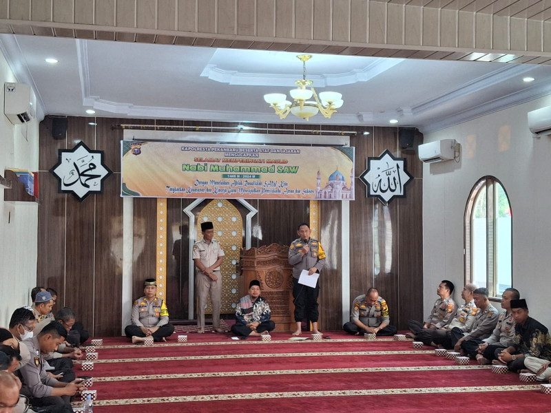 Acara dimulai pukul 08.30 WIB dengan penuh khidmat, mengingat pentingnya meneladani akhlak Nabi Muhammad SAW sebagai dasar dalam meningkatkan kualitas keimanan dan etos kerja, terutama di tengah pelaksanaan Pemilukada 2024 yang memerlukan suasana aman dan kondusif. Dalam sambutannya, Kapolresta Pekanbaru menegaskan bahwa peringatan Maulid Nabi tidak hanya menjadi momentum spiritual, tetapi juga sebagai pengingat untuk senantiasa mengedepankan nilai-nilai keadilan, kejujuran, dan kebersamaan.
