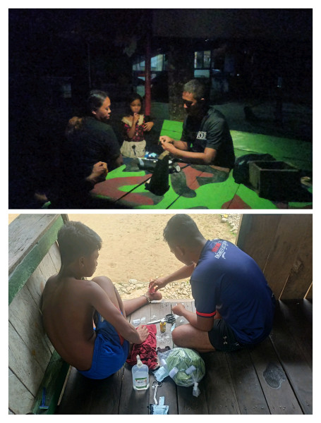 SINTANG, indonesiaclik.com || Sebagai upaya penanganan kepada warga yang terluka atau sakit, anggota kesehatan Satgas Pamtas RI-Malaysia Yonzipur 5/ABW Pos Semareh berikan pengobatan kepada warga akibat terkena benda tajam dan sakit demam di Desa Semareh RT 02, Kecamatan Ketungau Tengah, Kabupaten Sintang, Kalimantan Barat, Minggu (15/9/2024).