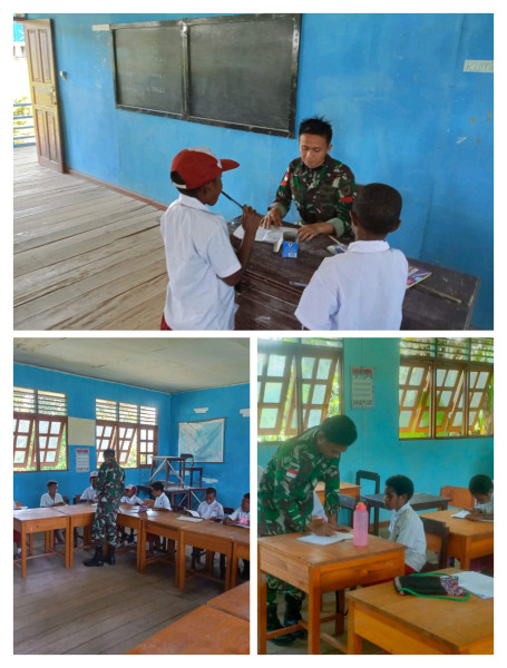 Sebelum memulai kegiatan belajar-mengajar, prajurit TNI terlebih dahulu mengajak anak-anak untuk membersihkan ruang kelas guna menciptakan lingkungan belajar yang nyaman dan kondusif bagi siswa. Kemudian memberikan materi dasar seperti membaca dan berhitung kepada para siswa SD tersebut.