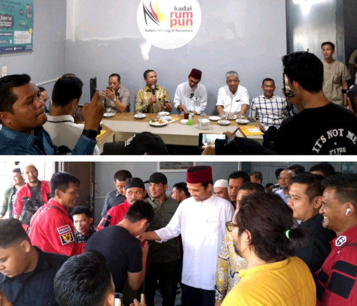 PEKANBARU, indonesiaclik.com ll Bakal Pasangan Calon (Bapaslon )Gubernur Riau Abdul Wahid bersama Ustad Abdul Somad (UAS) ngopi bareng di kedai kopi Bengkalis Arengka, Jumat (13/9/24), Jalan Soekarno Hatta , Sekira Pukul 8 Pagi.