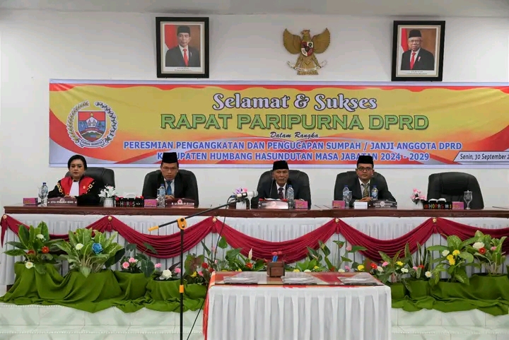 Humbang  Hasundutan. indonesiaclik.com ll  Senin Tgl. 30/09./2024 Ketua Pengadilan Negeri (PN) Tarutung Marta Napitupulu, S.H, M.H melantik/meresmikan 30 anggota DPRD Kabupaten Humbang Hasundutan (Humbahas) periode 2024-2029, Senin (30/09), di Kantor DPRD Kabupaten Humbahas Komplek Perkantoran Tano Tubu Doloksanggul.