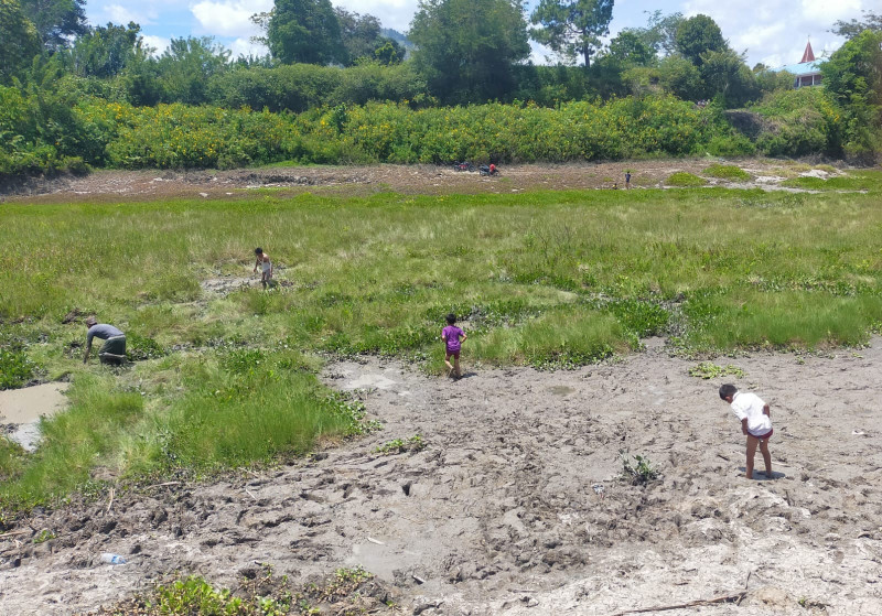 Pantauan Indonesiaclik.com dilokasi, Telaga Aek Natolu sudah tak berisi air, dipinggiran telaga, terlihat bekas air yang sempat naik. Banyak warga sekitar masuk ke telaga yang hanya menyisahkan lumpur, untuk menangkap Ikan Gabus dan Ikan Lele.