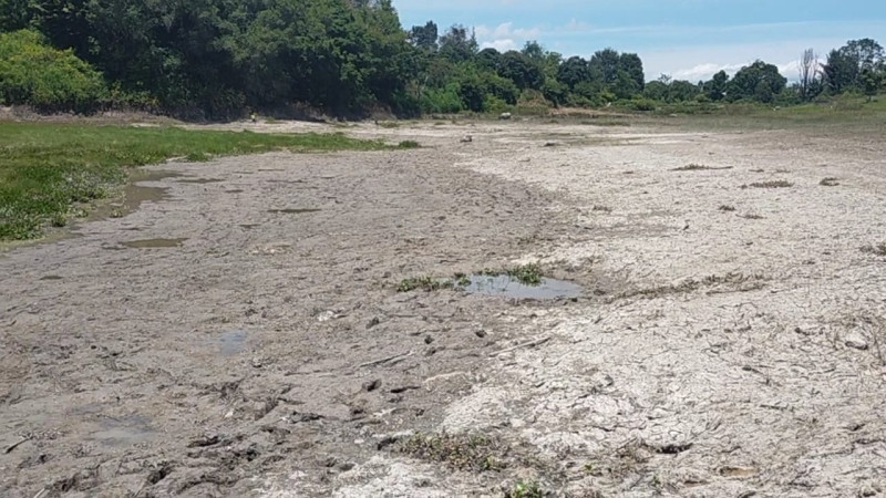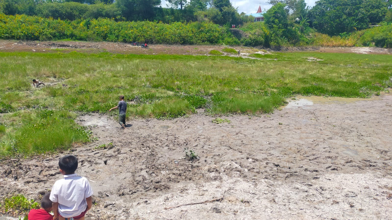 Pantauan Indonesiaclik.com dilokasi, Telaga Aek Natolu sudah tak berisi air, dipinggiran telaga, terlihat bekas air yang sempat naik. Banyak warga sekitar masuk ke telaga yang hanya menyisahkan lumpur, untuk menangkap Ikan Gabus dan Ikan Lele.