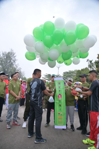 Pjs Bupati Bengkalis via Asisten Ekonomi dan Pembangunan Setda Bengkalis H. Toharuddin bersama Forkopimda Kabupaten Bengkalis mengikuti dan melepas peserta gerak jalan santai dalam rangka memeriahkan Hari Ulang Tahun (HUT) ke 79 Tentara Nasional Indonesia (TNI). Berlokasi di depan Makoramil Mandau Simpang Pokok Jengkol Duri.Kecamatan Mandau. Kabupaten Bengkalis. Minggu (06/10/2024).