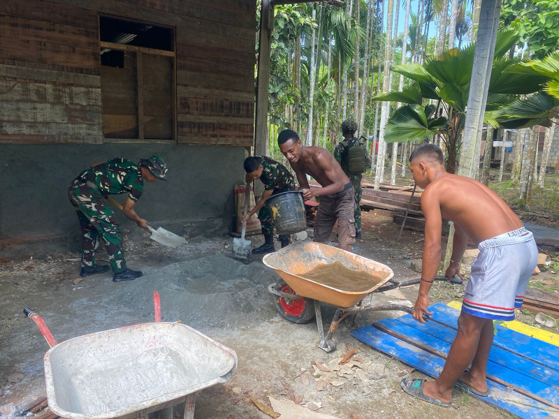 Kegiatan membantu pembangunan rumah warga di Papua seperti ini adalah salah satu wujud implementasi kepedulian dari Satgas Yonif 131/BRS dalam mengatasi kesulitan rakyat disekeliling pos.
