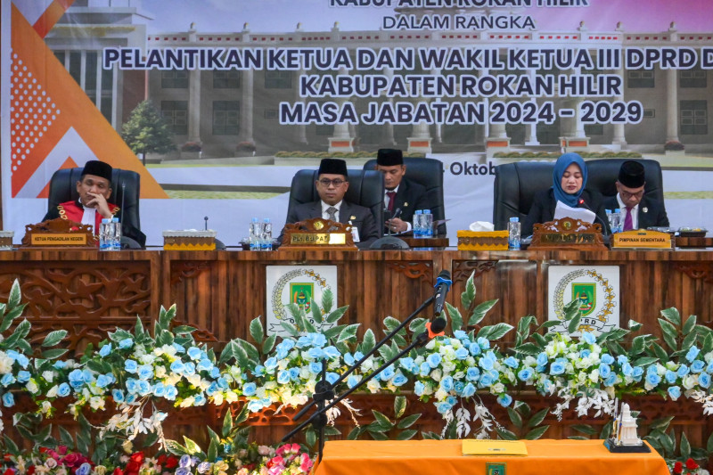 “Perkenankanlah kami atas nama pimpinan beserta segenap anggota DPRD Kabupaten Rokan Hilir menyampaikan ucapan terima kasih yang sebesar-besarnya kepada jemputan majelis yang kami muliakan yang telah berkenan hadir memenuhi undangan kami pada rapat paripurna DPRD dalam rangka peresmian pengangkatan pimpinan DPRD Kabupaten Rokan Hilir maka jabatan 2024-2029 ini,” kata Ilhami.
