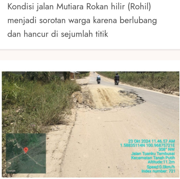 Terkait hal nahas tersebut, Ketua DPD Asosiasi Pewarta Pers Indonesia (A-PPI) Kabupaten Rokan hilir, Sakti Sitanggang menyoroti jalan rusak yang membahayakan masyarakat pengguna lalin dalam melintasi jalan Mutiara ke sedinginnan.