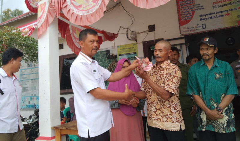 Pendistribusian BLT-DD bertempat di Balai Pekon Teba Liokh, didampingi Camat Batu Brak.