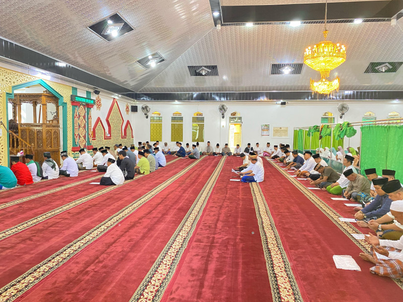 Pada peringatan santri Nasional ke-9, Penjabat (Pj) Sekretaris Daerah (Sekda) Kabupaten Lampung Barat Drs. Ismet Inoni bersama jajaran menggelar shalat Istisqa hingga doa bersama di masjid Baiturrahim Kelurahan Way Mengaku Kecamatan Balik Bukit, Selasa 22 Oktober 2024.