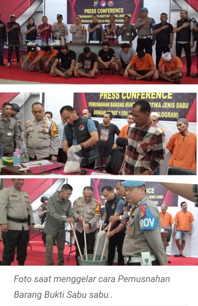 Polres Rokan hilir Conference, musnahkan Narkoba hasil tangkapan dalam kurun dua bulan terakhir.