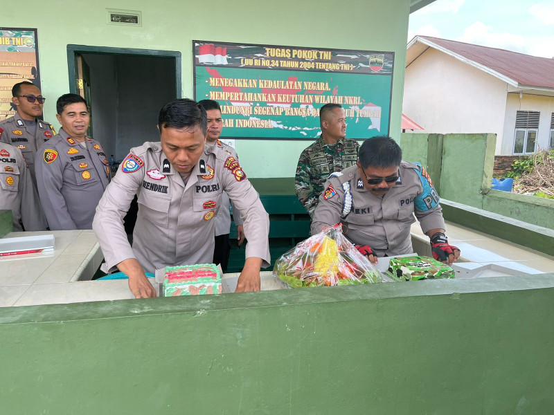 Kapolsek Singingi Hilir AKP Agus Susanto, S.H., M.H., memberikan ucapan selamat ulang tahun ke-79 kepada jajaran Koramil 09/Singingi. Acara ini dihadiri oleh Kanit Reskrim IPDA Deby Setyawan, S.H., M.H., Kasium Polsek Singingi AIPTU M. Donal, Babinkamtibmas AIPTU M. Syarief, Babinkamtibmas AIPDA Devi Asnadi, anggota unit Reskrim BRIGADIR M. Arief, serta Banit Sium BRIPTU Pratiwi.