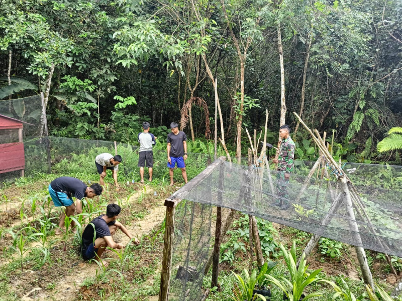 Sintang,  indonesiaclik.com || Melalui berkebun, remaja rumah singgah bersama anggota Satgas Pamtas RI-Malaysia Yonzipur 5/ABW memanfaatkan lahan yang ada dengan menanam jagung guna mendukung ketahanan pangan, tepatnya di Desa Senaning, Ketungau Hulu, Kabupaten Sintang, Sabtu (12/10/2024).