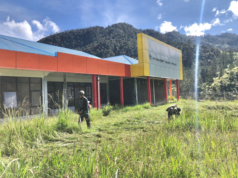 Mayuberi, indonesiaclik.com || Demi menciptakan lingkungan yang bersih agar terhindar dari berbagai penyakit, Satgas Yonif 323 Buaya Putih TK Mayuberi melaksanakan karya bakti dalam rangka HUT TNI Ke-79 dengan membersihan Puskesmas Kampung Mayuberi, Distrik Ilaga Utara, Kabupaten Puncak, Selasa (08/10/2024)
