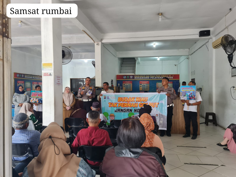 Sementara itu, di lokasi kegiatan, TIM Cooling System Ditlantas Polda Riau yang dipimpin langsung IPDA Rivo Laksono di kantor pelayanan Samsat Rumbai tampak membagikan brosur, permen dan air mineral kepada Wajib Pajak.