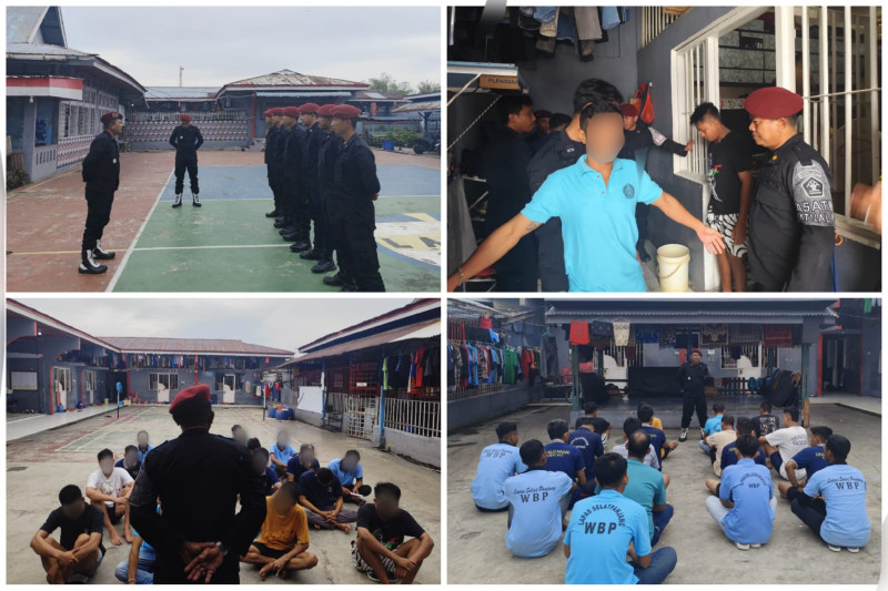 SELATPANJANG ,indonesiaclik.com ll Jajaran Pengamanan yang dipimpin oleh Kasi Adm. Kamtib, Lapas Selatpanjang Petrus Bambang Sugiarto melaksanakan razia dan penggeledahan terhadap Blok B guna deteksi dini cegah gangguan Keamanan di Lapas Selatpanjang, Kamis (17/10/2024).