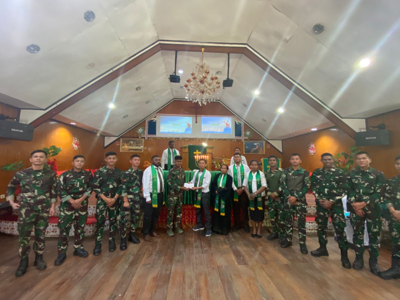Kepala Klasis Gereja an. Bapak Obet Alom mengaku senang dan mengucapkan terima kasih kepada personel TK Kotis dan TK Koper Satgas Yonif 323/Buaya Putih yang telah bersama melaksanakan ibadah bersama dan memberikan Bantuan Al-Kitab serta Alat Musik