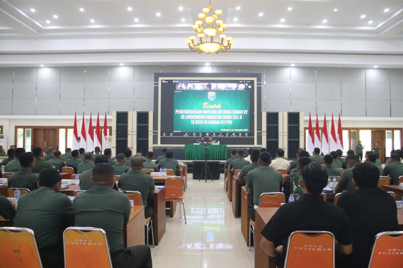 Kubu Raya, indonesiaclik.com ll Kodam XII/Tanjungpura menggelar bimbingan teknik penatausahaan Barang Milik Negara (BMN) dan sosialisasi sistem informasi dan manajemen aset negara (Siman) V2 di Lingkungan TNI AD Gelombang II TA 2024. Bertempat di Aula Sudirman, Makodam XII/Tpr, Rabu (6/11/2024).