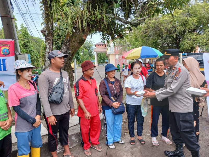 Dalam rangka Jumat Berkah, Polres Sibolga bagikan Nasi dijalan Raya. Agar mengetahui apa saja informasi saran dari warga untuk Kamtibmas selalu kondusif di Kota Sibolga, Kapolres Sibolga AKBP Achmad Fauzy, SH, SIK, MIK, diwakili Kasat Reskrim Polres Sibolga AKP Rudi Panjaitan, SH, Kasat Binmas Polres Sibolga IPTU Martua Sinaga dan KBO Sat Narkoba Polres Sibolga IPDA Boy Alexander Hutasoit, SH, bersama Personil Polres Sibolga, serta Pengurus Bhayangkari Cabang Sibolga, melaksanakan kegiatan Jumat Berkah dengan membagikan Nasi kepada warga yang melintas dijalan dan menyapa dengan humanis, sehingga warga dapat menyampaikan masukan saran kepada Polres Sibolga, untuk Kamtibmas agar terjaga dengan baik dan kondusif menjelang Pilkada Serentak Tahun 2024, di Kota Sibolga.