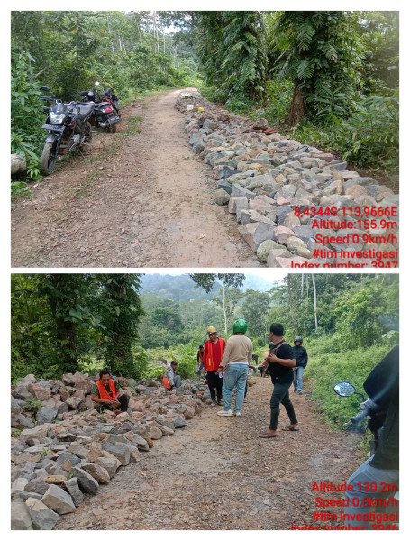 Dari hasil tim investigasi IWB bersama awak media beberapa bulan yang lalu. Dinketahui bahwa proyek pembuatan jalan menuju titik bagunan kantor LPHM KLHK sumberjambe sepanjang 750 meter tersebut berupa makadam dengan mengunakan bahan material batu yang berasal dari sungai setempat.