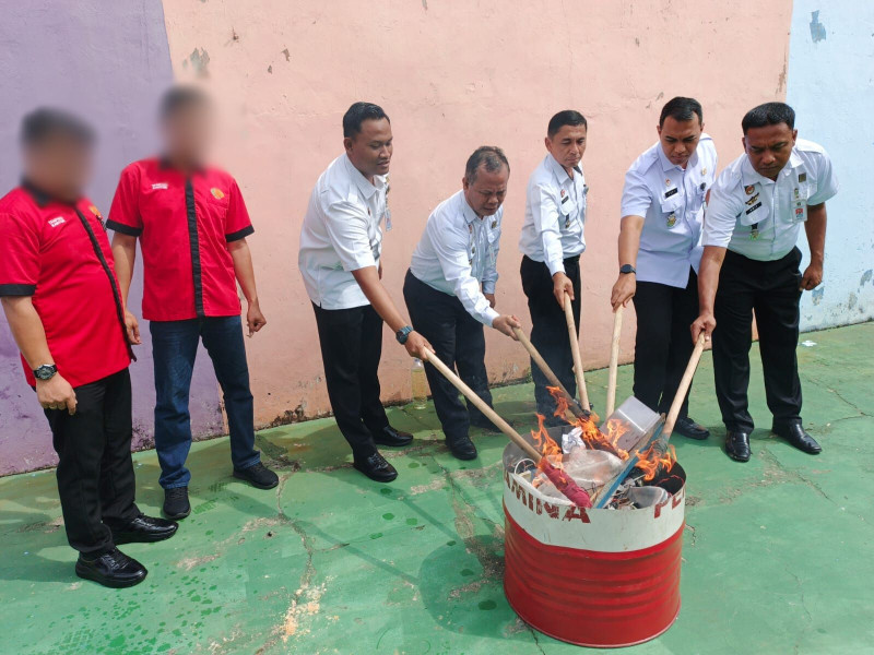Kalapas Kelas IIA Pekanbaru, Erwin Fransiskus Simangunsong, menuturkan, “Hari ini kita bersama-sama mengadakan pemusnahan barang bukti hasil razia yang mana barang-barang tersebut yang tidak diperkenankan berada di dalam Lapas. Pemusnahan barang bukti tersebut merupakan hasil dari razia kita lakukan secara rutin dan insidentil pada kamar blok hunian warga binaan,” ucapnya.