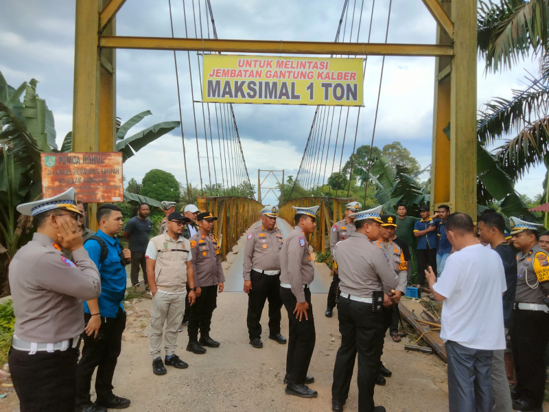 Dir Lantas Polda Riau Tinjau Jembatan Sungai Rokan Yang Rusak Di Kecamatan Ujung Batu