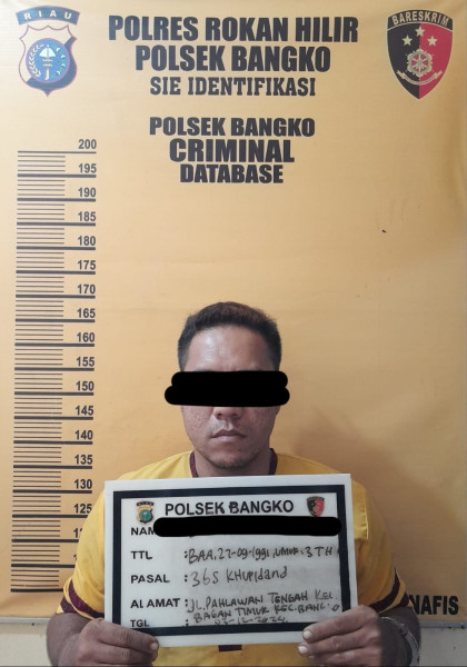 Diketahui dan teridentifikasi pelaku Curas tersebut adalah BA alias Bob, diperoleh informasi bahwa Ianya sedang berada di rumah di Jl. Al Ridho Kepenghuluan Labuhan Tangga Besar Kecamatan Bangko, lalu Unit Reskrim Polsek Bangko yang dipimpin oleh Kanit Reskrim bersama Panit 1 Opsnal Ipda Dahri Iskandar Lubis menuju rumah tersebut.