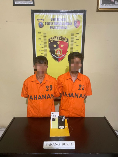 Tim Unit Reskrim Polsek Sibolga Sambas, langsung menuju lokasi tersebut dan berhasil menangkap kedua Tersangka, yang berinisial PL (28) Tahun, seorang buruh, dan LS (28) Tahun, seorang Wiraswasta. Dalam Penangkapan tersebut, Polisi juga berhasil mengamankan barang bukti berupa satu unit handphone merk Vivo Y35 8/128 warna hitam beserta kotaknya, yang diduga kuat merupakan barang hasil pencurian.