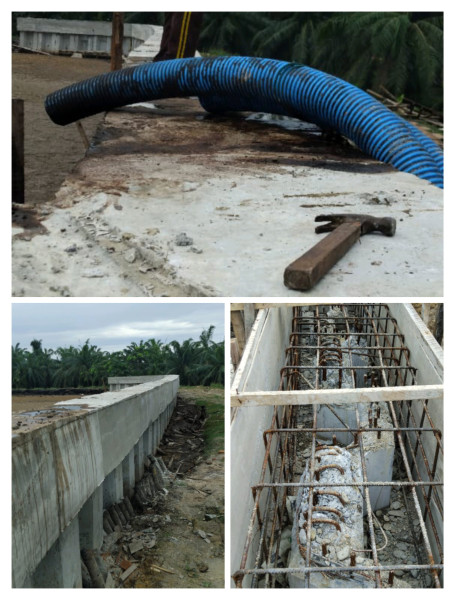 Selain itu, besi angker beton dinding kolam tidak diikat secara merata dengan besi angker beton balok penutup dinding kolam.