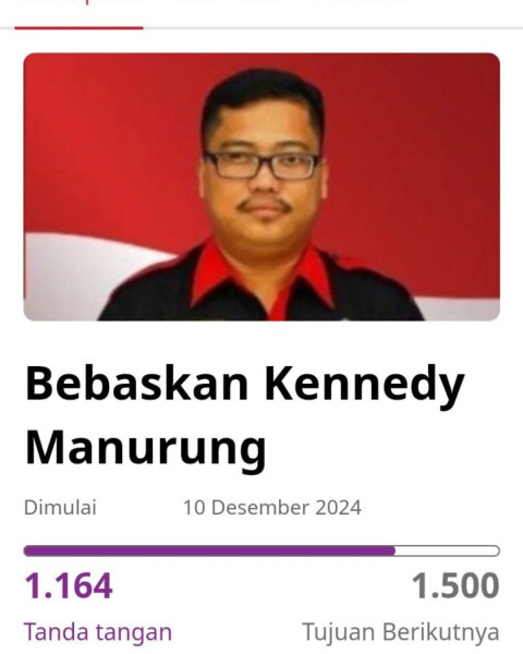 Medan, indonesiaclik.com ll Di kutip dari situs www.change.org tentang penandatanganan petisi Kennedy Manurung, masih jadi perhatian publik. Terbukti dengan tanda tangan di Petisi pembebasannya telah ribuan orang berpartisipasi.