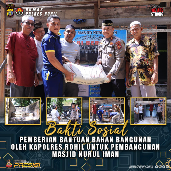 Disambut, Ketua BKM Masjid Nurul Iman Khoiruddin Tanjung, Wakil ketua BKM Masjid Nurul Iman Budi Sihombing dan Perwakilan jemaah Masjid Nurul Iman Saleh, Kapolres Rohil kesini memberikan bantuan bahan bangunan berupa semen sebanyak 50 sak, untuk mendukung pembangunan Masjid yang saat ini tengah berlangsung tersebut.