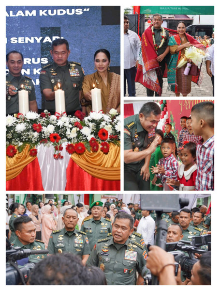 Medan, indonesiaclik.com || Kepala Staf TNI Angkatan Darat (Kasad), Jenderal TNI Maruli Simanjuntak, bersama Ketua Umum Persit Kartika Chandra Kirana, Ny. Uli Simanjuntak melakukan kunjungan kerja ke Kodam I/BB di Medan untuk merayakan Natal 2024 bersama Prajurit dan PNS Kodam I/BB yang beragama Nasrani, serta meresmikan renovasi Panti Asuhan Bait Allah di Medan Sunggal pada Selasa (7/12/2025).