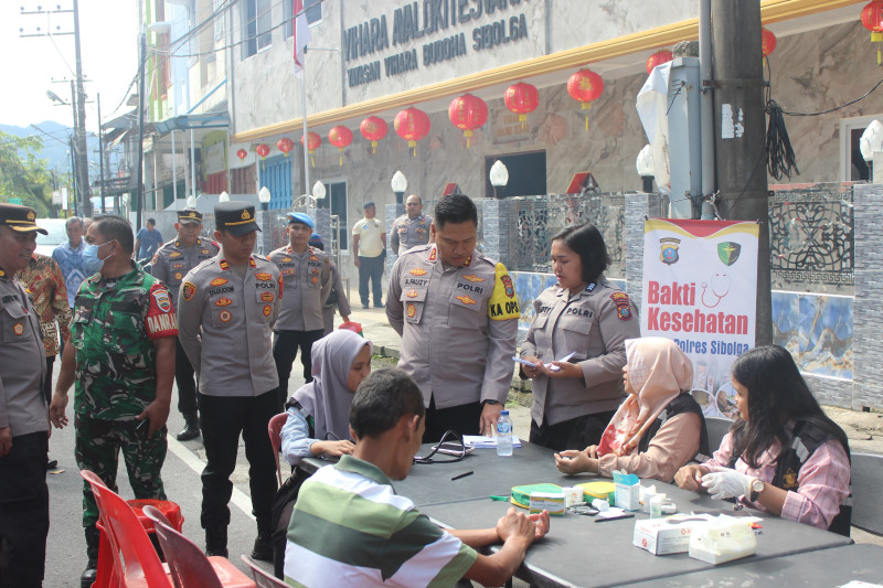 SIBOLGA , indonesiaclik.com ll Tim Sidokkes Polres Sibolga melaksanakan kegiatan pelayanan dan pemeriksaan kesehatan gratis kepada Masyarakat yang berlangsung di rumah Ibadah Vihara Avalokitesvara, yang terletak di Jalan S. Parman, Kelurahan Pasar Baru, Kecamatan Sibolga Kota, Kota Sibolga, Rabu (29/01/2025), pukul 08.00 WIB, sampai selesai.