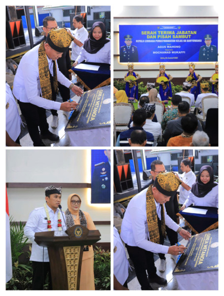 Serah terima jabatan disaksikan langsung oleh Kepala Kantor Wilayah Direktorat Jenderal Pemasyarakatan Jawa Timur Kadiyono di Aula Sahardjo Lapas Banyuwangi, Rabu (22/1).