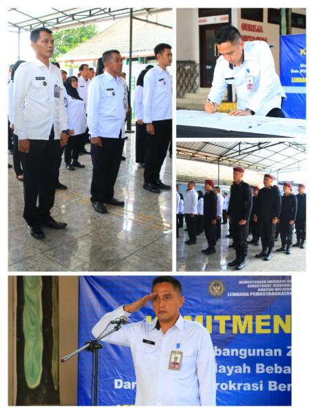 Seluruh pegawai Lembaga Pemasyarakatan (Lapas) Kelas IIA Banyuwangi melaksanakan deklarasi janji kinerja, pakta integritas dan penandatanganan komitmen bersama pembangunan Zona Integritas (ZI) menuju Wilayah Bebas dari Korupsi (WBK)/Wilayah Birokrasi Bersih dan Melayani (WBBM), Kamis (23/1).