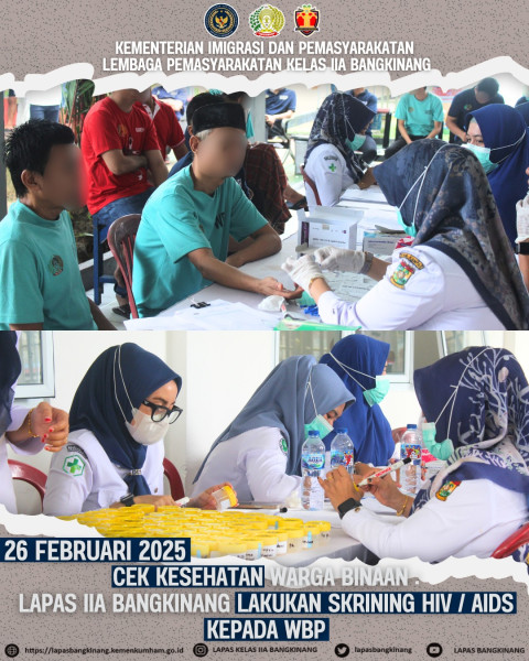 Oleh karna itu, Lembaga Pemasyarakatan (Lapas) Kelas IIA Bangkinang bekerjasama dengan Dinas Kesehatan Kabupaten Kampar melalui Puskesmas Bangkinang melakukan scrining HIV dan TBC bagi tahanan yang baru masuk. Selasa (25/02/2025).