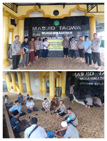 SIBOLGA , indonesiaclik.com ll Dalam rangka menyambut Bulan Suci Ramadhan, Polsek Sibolga Selatan Polres Sibolga, melaksanakan kegiatan Bhakti Religi Rumah Ibadah. Adapun Rumah Ibadah yang dilaksanakan Bhakti Religi membersihkan Masjid Taqwa Muhammadiyah Sibolga Jalan KHA. Dahlan Kelurahan Aek Manis Kecamatan Sibolga Selatan, Kota Sibolga, Senin (24/02/2025).