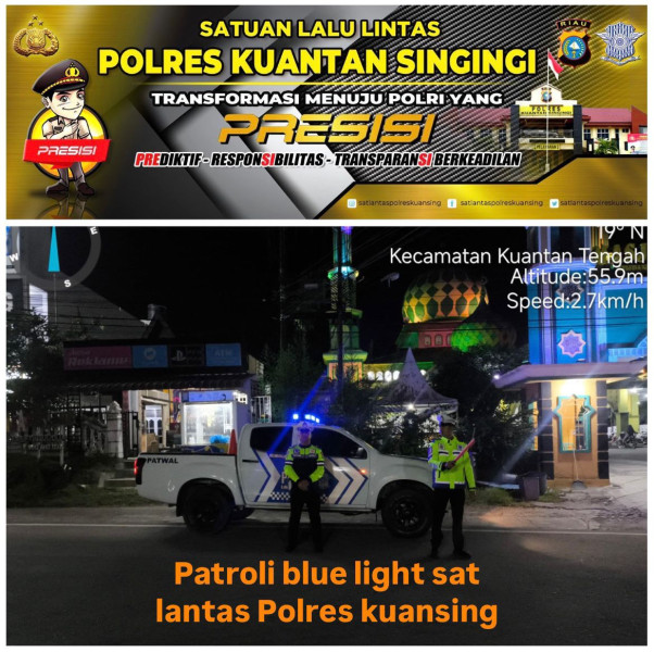Kapolres Kuantan Singingi AKBP Angga F. Herlambang, S.I.K., S.H., melalui Kasat Lantas Polres Kuansing, AKP A. Ramadhan, S.H., M.Si., menyampaikan “Patroli Blue Light ini merupakan bagian dari upaya Sat Lantas Polres Kuansing dalam menciptakan situasi yang aman dan kondusif di wilayah hukum Polres Kuansing. Adapun hasil yang diharapkan dari kegiatan ini antara lain Terciptanya Kamseltibcarlantas, Pencegahan terhadap pelanggaran lalu lintas, Mengantisipasi kecelakaan lalu lintas (laka lantas), dan Memberikan rasa aman kepada masyarakat,” jelas Kasat.