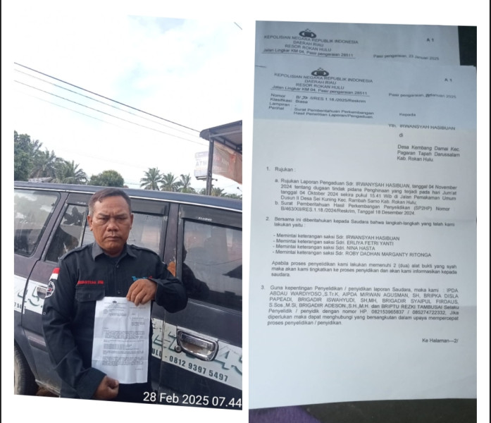 ” Saya sebagai penerima kuasa dari Masyarakat dan kawan kawan, Memang Sangat Heran mulai dari pencemaran limbah sudah di laporkan ke instansi terkait baik ke pihak Dlh juga DLHK Propinsi hanya berjalan di tempat, namun dalam laporan ke polres Rokan Walau agak alot laporan tanggal 4 November 2024 Melaporkan Humas PT SKA Robi Dadhan marganti Ritonga Secara Resmi Kapolres Rokan hulu dengan tuduhan Dugaan tindak pidana Penghinaan terhadap Seluruh masyarakat desa Seikuning Dengan kata kata Bodoh kalian semua, Kepala desa kalian yang mengijinkan ini ditanam pipa paralon ini Disini dan kades kalian yang menyuruhnya sebut si Robi dan sembari menunjukan surat rekomendasi mendirikan PMKS yang jaraknya kurang lebih 500 meter dari penanaman Pipa paralon waterintek milik PT SKA di pemakaman milik masyarakat,