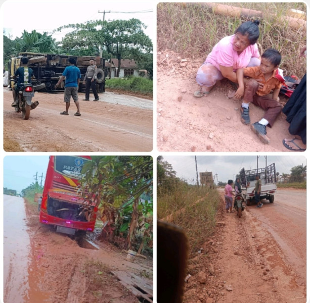 Seperti kejadian yang menimpa seorang ibu-ibu yang tengah menjemput anaknya pulang sekolah mengalami kecelakaan dampak licinnya jalan dan debu berlebih yang menutupi pandangan mata dilokasi jalan lintas Balam Km. 13. Rabu (5/2/2025) Untungnya dari kecelakaan itu ibu dan anak tersebut tidak mengancam nyawanya.